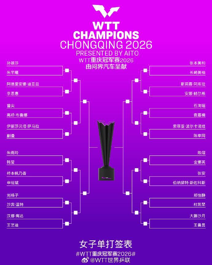 WTT重庆冠军赛2026